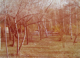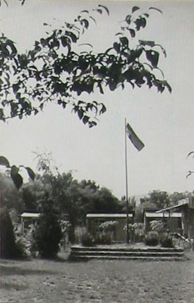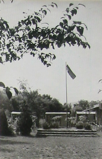 A zászlótér, háttérben a vándor (II.) tábor faházai