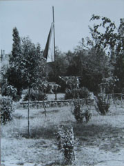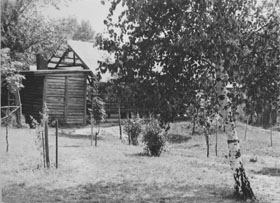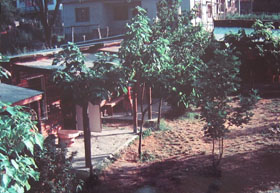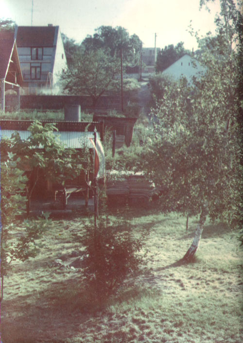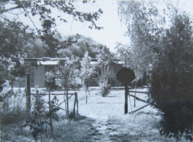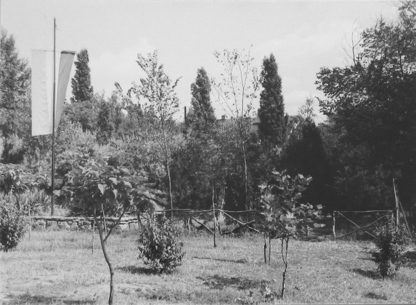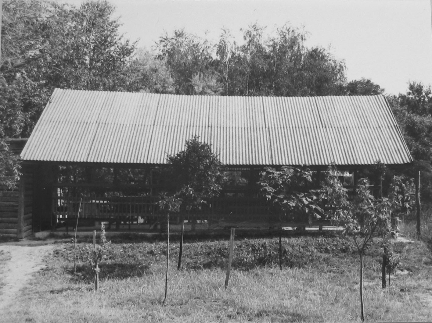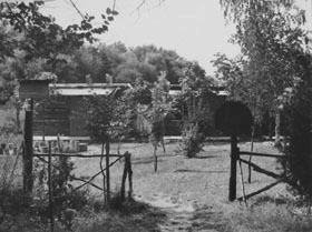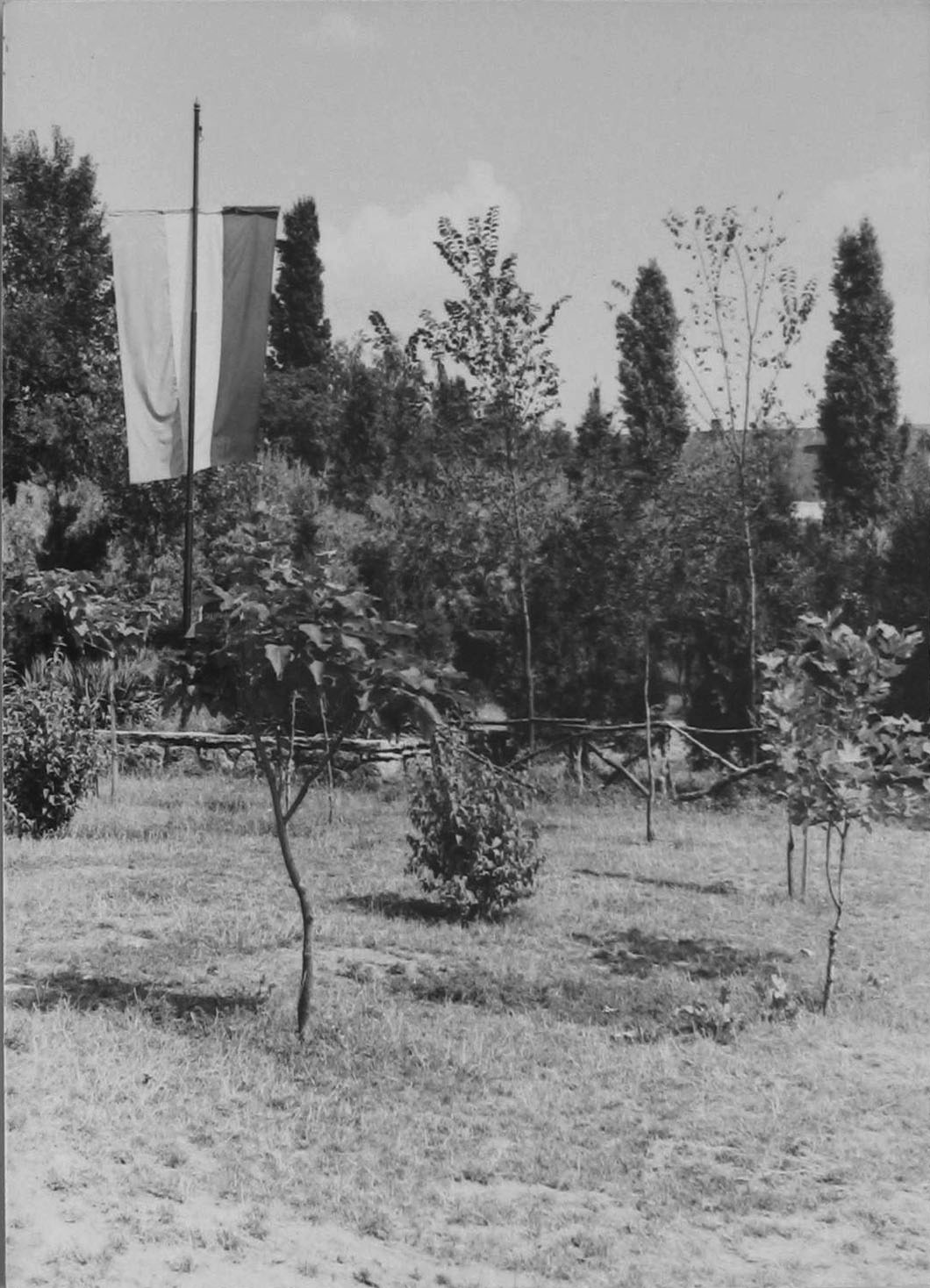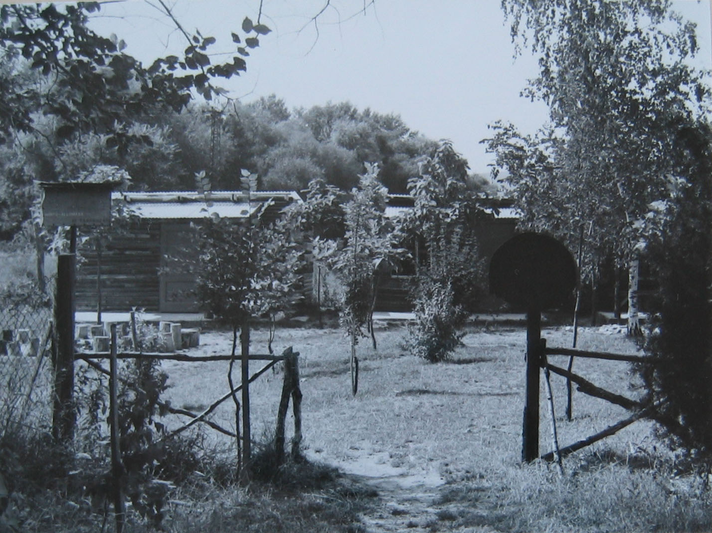 A Parancsnoki ház, háttérben a zászlótér, elöl a Vándortábor. A fénykép a II. tábor őrtornyából készült.